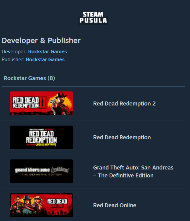 - Developer & Publisher: Displays the game's developer and publisher information and lists other games by the same developer.