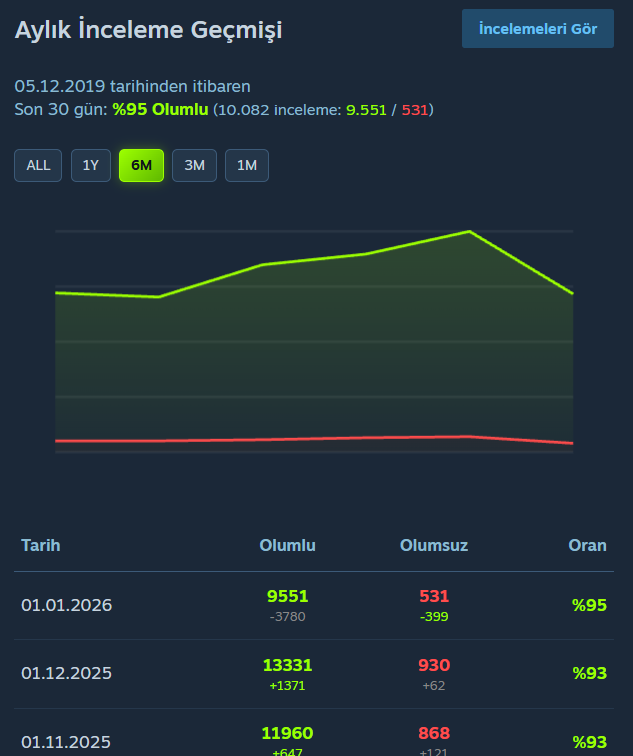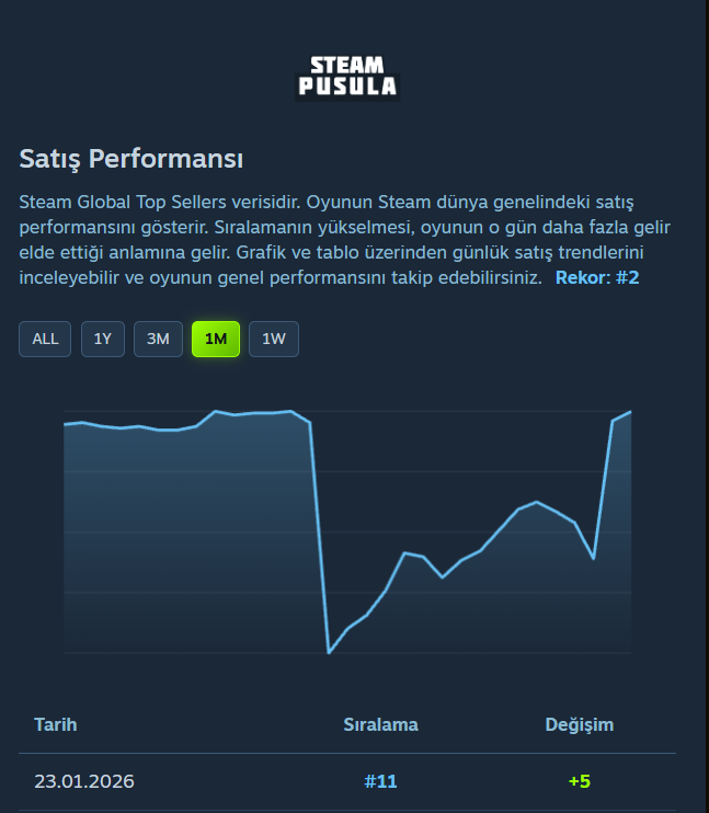 - Satış Performansı: Steam Global Top Sellers verisidir. Oyunun Steam dünya genelindeki satış performansını gösterir.