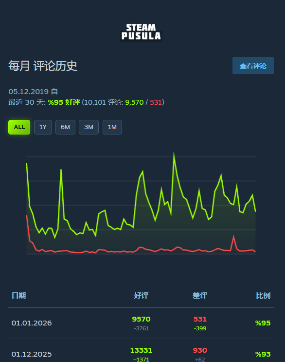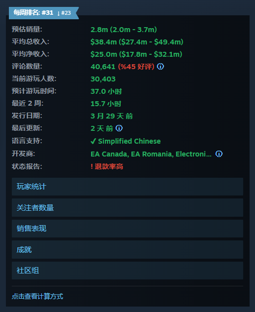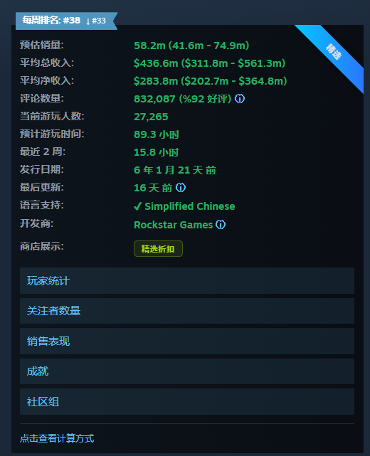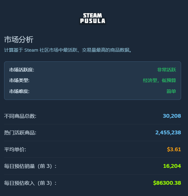 数据基于 Steam 上的预估销量、价格和用户评论计算得出。 本扩展程序与 Valve 或 Steam 没有任何官方关系。所有数据均为估算值,仅用于分析和参考。